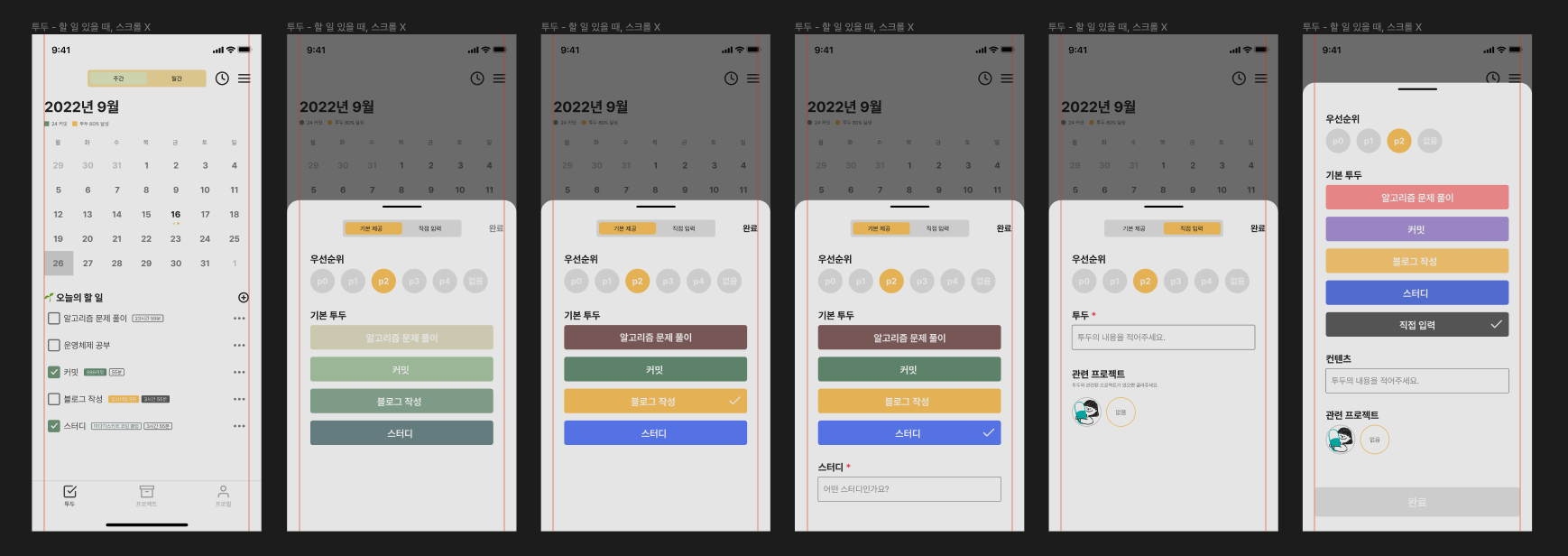 ์ฒ์์๋ ์ํธ ์์์ ๊ธฐ๋ณธ ๋ธ๋ก์ ์ด์ฉํด์ ํ ์ผ์ ์ถ๊ฐํ๋ ๊ฒ๊ณผ ์ฌ์ฉ์๊ฐ ์ง์ ๋ด์ฉ์ ์ ๋ ฅํด์ ํ ์ผ์ ์ถ๊ฐํ๋ ๊ฒ์ ๊ตฌ๋ถ์ง๊ธฐ ์ํด์ ์๋จ์ ์ค์์น๋ฅผ ๋์์ด์. ๊ทธ๋ฐ๋ฐ ๋ฉํ ๋์ ํผ๋๋ฐฑ์ ๋ฃ๊ณ ๋๋๊น ์๊ฐ์ด ๋ฐ๋๊ฒ ๋์์ต๋๋ค. ์ฌ์ฉ์๊ฐ ์ฑ์ ์ฌ์ฉํ๋๋ฐ ๋ค์ด๋ ๋ ธ๋ ฅ์ ์ต์ํํด์ผ ํ๋ค๋ผ๋ ๊ฒ์ด์์ฃ . Depth๊ฐ ๊น๊ณ , ์ฑ์ ์ฌ์ฉํ๋๋ฐ ๊ท์ฐฎ์์ ๋๋ผ๋ ์๊ฐ ์ฌ์ฉ์๋ ์ฑ์ ์ฌ์ฉํ์ง ์์๊ฒ ๋ถ๋ช ํ๊ธฐ ๋๋ฌธ์ ๋๋ค. ์๊ฐ์ ํด๋ณด๋๊น ์ ๋ ๊ทธ๋ผ ์ ์ธ ๊ฒ ๊ฐ์์ต๋๋ค. ๊ทธ๋์ ์ํธ์ ์์ฑ๋ถ๋ฅผ ํ๋๋ก ํต์ผํ๋ ํํ๋ก ๋ฐ๊ฟจ์ด์. ๋ง์ง๋ง ํ๋ฉด์ฒ๋ผ์!