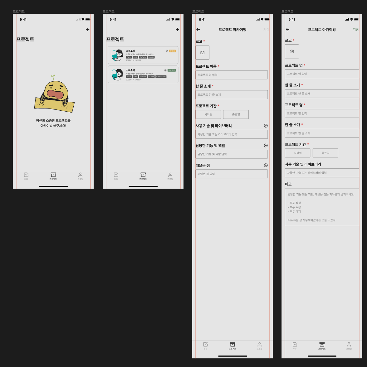 ํ๋ก์ ํธ๋ฅผ ์์นด์ด๋น ํ๋ ๋ถ๋ถ๋ ๊ณ ๋ฏผ๊ณผ ๊ฐ์ ์ ์๋ํ์ต๋๋ค. ์๋๋ ์์ฑ ํญ๋ชฉ์ด ๋ ๋ง์๋๋ฐ์. ์ ๋ ฅํ๋ ํ๋๊ฐ ๋ง์์ง ์๋ก ์ฌ์ฉ์๋ ํผ๋ก๋ฅผ ๋๋ผ๊ณ ์ฑ์ ์ฌ์ฉํ๊ธฐ ์ซ์ด์ง๋๋ค. ๊ทธ๋ ๊ธฐ์ ์ต๋ํ ๊ฐ์ํํ๋ ์์ ์ด ํ์ํ์ด์. ๊ทธ๋์ ๋ด๋นํ ๊ธฐ๋ฅ ๋ฐ ์ญํ , ๊นจ๋ฌ์ ์ ๋ฑ ๋ฉ๋ชจํ ์ ์๋ ํญ๋ชฉ์ ๋ฉ๋ชจ ํ๋๋ก ํต์ผํด์ ์์ฑํ ์ ์๋๋ก ํ๋ placeholder๋ก ๊ฐ์ด๋๋ฅผ ์ฃผ์ด์ ์ฌ์ฉ์๊ฐ ์ ๋ ฅํ๋ ค๋ ๋ด์ฉ์ ๋ํ ๋ฐฉํฅ์ฑ์ ์์ง ์๋๋ก ํ์ต๋๋ค. ์ง๊ธ๋ ํญ๋ชฉ์ด ๋ง์ ๊ฒ ๊ฐ์๋ฐ ๋ ์ค์ผ ์ ์๋ ๋ฐฉ์์ ๋ํด์ ๊ณ ๋ฏผ์ ํด๋ด์ผ๊ฒ ์ด์.