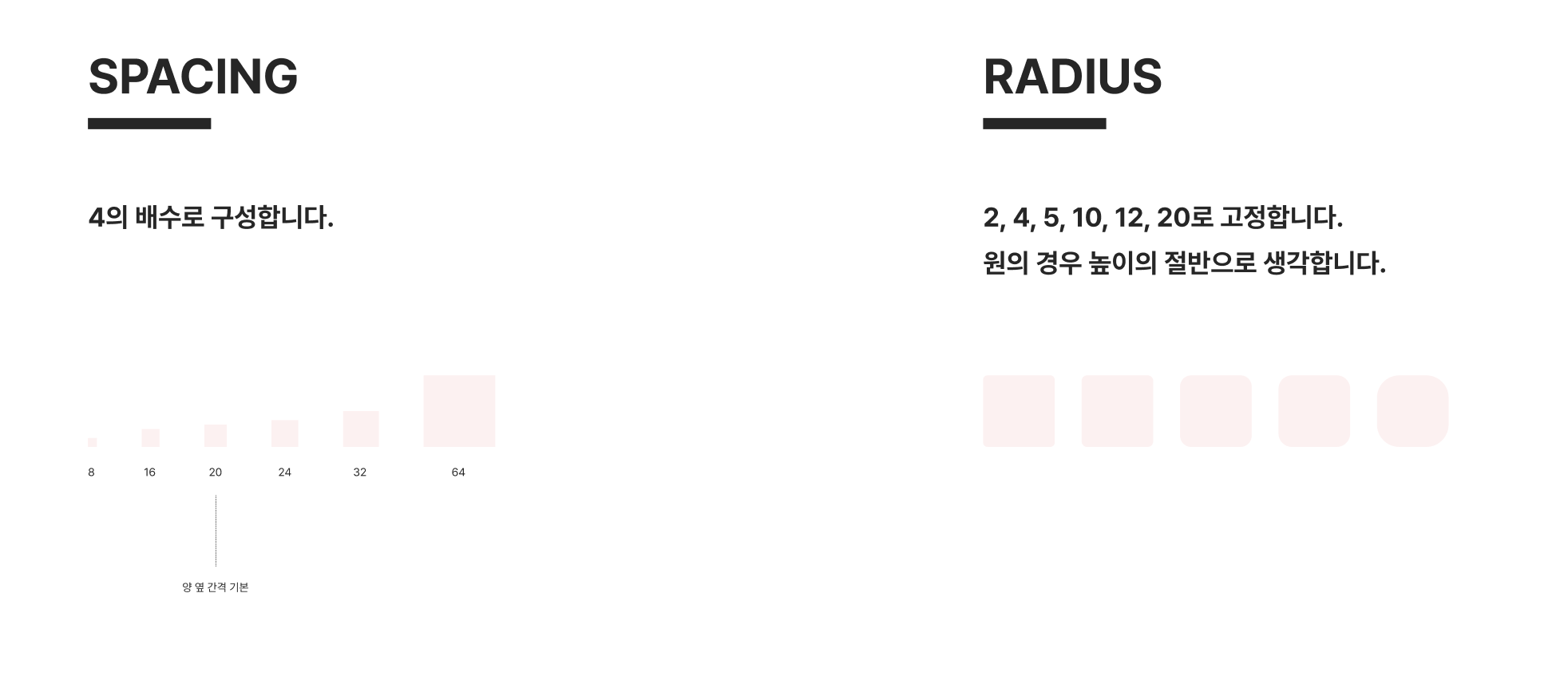 ๊ฐ๊ฒฉ, ๋ฅ๊ธ๊ธฐ(Spacing, Radius)