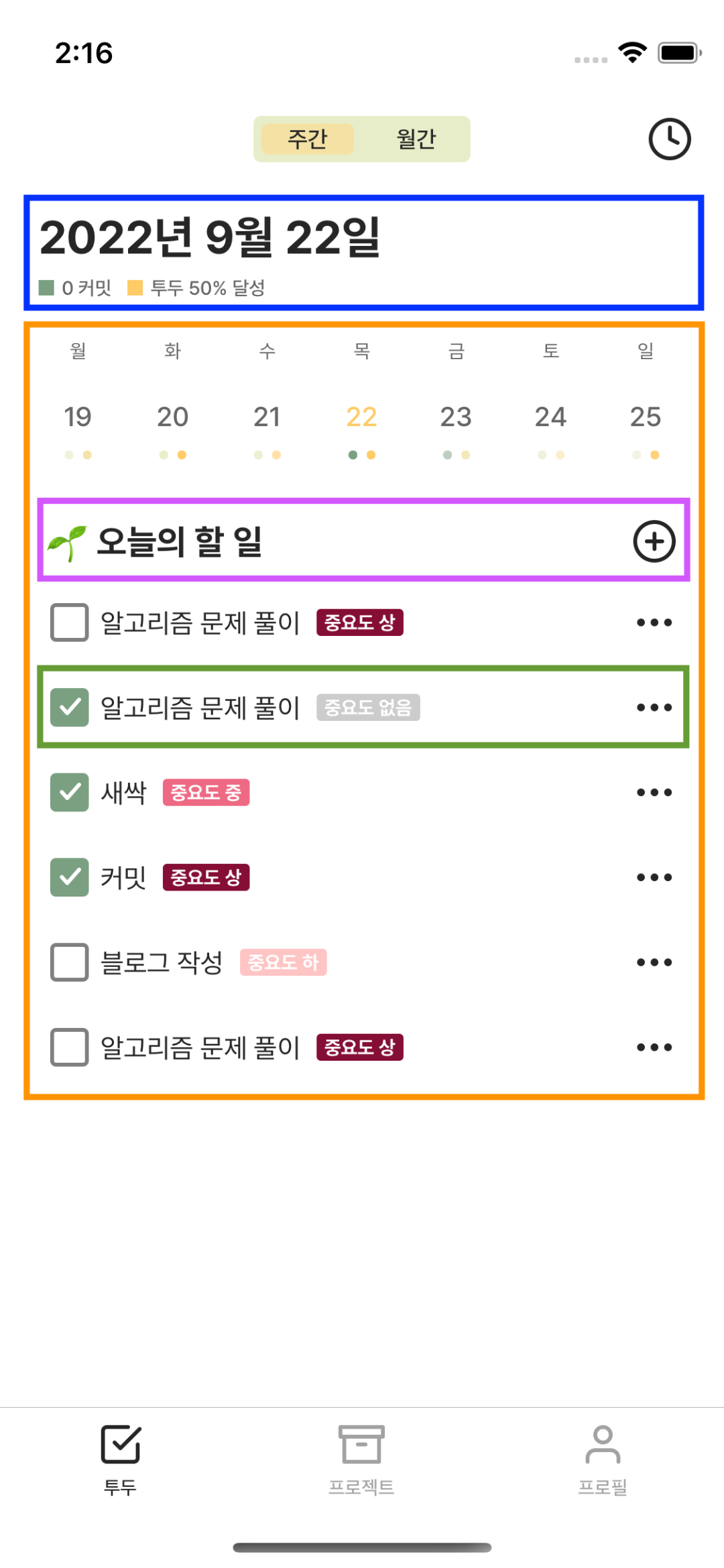 3. ์ด๊ฒ์ ๊ณต์ ์ฐ์ ๊ณผ ๊ด๋ จ์ด ์์ผ๋ฉด์๋ ๊ฑฐ๋ฆฌ๊ฐ ์๋ ๋ด์ฉ์ด๊ธฐ๋ ํ๋ฐ ๋ฌด์์ ๋จผ์ ์์ ํด์ผํ ์ง์ ๋ํ ๋ถ๋ถ๋ ๊ณ ๋ฏผํ ํ์๊ฐ ์์ด๋ณด์ฌ์. UI๋ฅผ ์ง๋ ์์ ์ ๋จผ์ ์ญ ํด์ผํ ์ง ๋ฐ์ดํฐ ๊ตฌ์กฐ๋ฅผ ๊ณ ๋ คํ๋ฉด์ ํ๋์ฉ ์ฐจ๊ทผ์ฐจ๊ทผ ์์ฑํด๋๊ฐ์ง๋ ๊ณ ๋ฏผ์ด ํ์ํด๋ณด์ ๋๋ค. --- ์ด๋ฒ์๋ ๋ ์ด์์์ ๋จผ์ ๋นจ๋ฆฌ ๋ค ์ก๊ณ ๊ธฐ๋ฅ์ ์ธ ๋ถ๋ถ์ ๋ํ ํฌ์๋ฅผ ์ข ๋ ํ์ผ๋ฉด ์ด๋ ์๊น๋ผ๋ ์๊ฐ์ด ๋ค์์ด์.