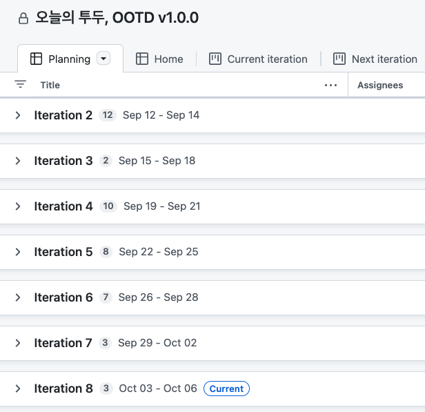 ์ฒ์์๋ ๋ ธ์ ์ผ๋ก ๋ฌํํ๊ฒ iteration ์ฃผ๊ธฐ์ ๋ฐ๋ฅธ ๊ฐ๋ฐ ๊ณต์ ์ฐ์ ์ ์งํํ์๋๋ฐ, ์ด์๋ฅผ ๋ง๋ค๊ณ ๊ทธ์ ๋ฐ๋ผ ๊ฐ๋ฐ์ ์งํํ๋ ์ ์๊ฒ๋ ๊นํ๋ธ Project๋ฅผ ์ด์ฉํด์ ํ๋ก์ ํธ๋ฅผ ๊ด๋ฆฌํ๋ ๊ฒ์ด ์ ๊ทผ์ฑ์ด ๋ ํธํ๋ ๊ฒ ๊ฐ์ต๋๋ค.