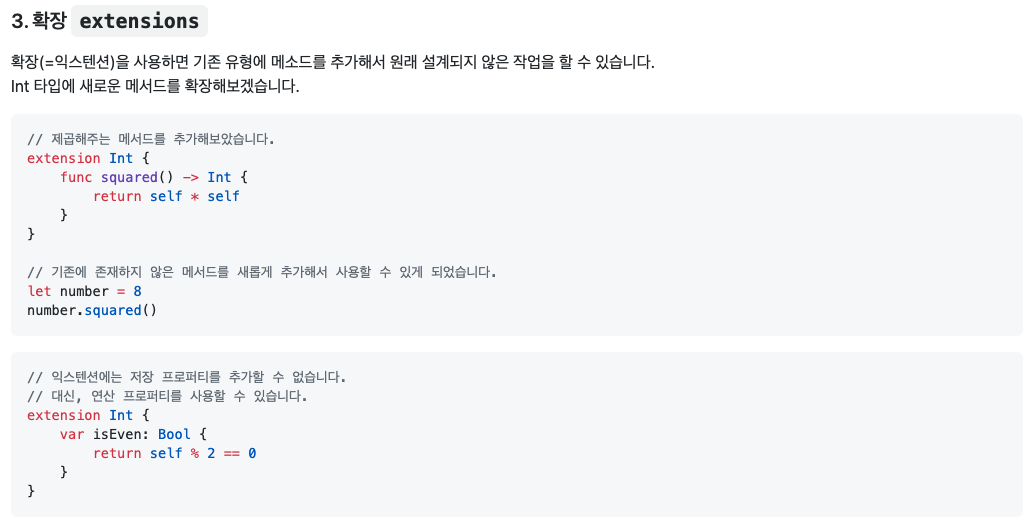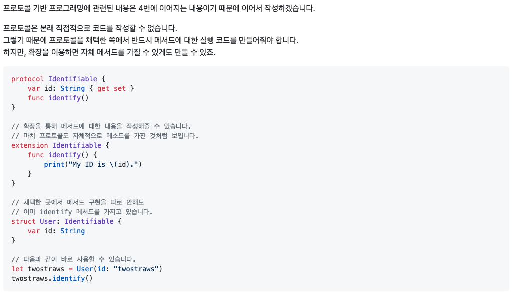 프로토콜과 확장(익스텐션)에 대해서 배워보았습니다.