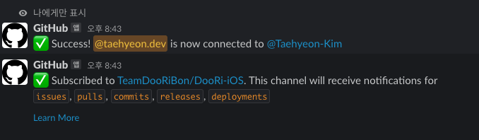ex. /github subscribe TeamDooRiBon/DooRi-iOS