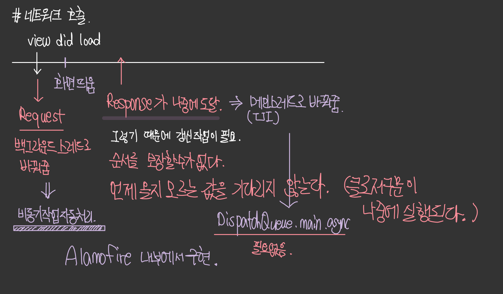 ๋คํธ์ํฌ ํธ์ถ์ ํ๊ณ ๋ ํ Response๊ฐ ์ค๋ ์์ ์ ์ธ์ ์ธ์ง ์ ์ ์๋ค. ํ๋ฉด์ TableView ๋๋ CollectionView๊ฐ ๊ทธ๋ ค์ง ๋ ์์ง ์๋ฒ์์ ๋ฐ์ดํฐ๋ฅผ ๋ชป ๋ฐ์์๋ค๋ฉด ํ๋ฉด์ ๊ทธ๋ฆด ๋ด์ฉ์ด ์์ ๊ฒ์ด๋ค. ํ๋ฉด์ ์ด๋ฏธ ๊ทธ๋ฆฐ ํ์ ๋ฐ์ดํฐ๊ฐ ๋์ฐฉํ๋ค๊ณ ์๊ฐํด๋ณด์.