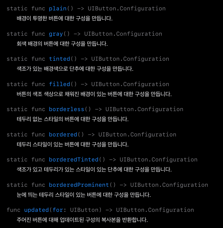 ์์ง ์ค์ ๋ก ์ ์ฉํ์ง๋ ์์์ง๋ง, ํ๋ก์ ํธ ๋ด์ 3๊ฐ์ง ์คํ์ผ์ ๋ฒํผ์ด ์๋ค๊ณ ๊ฐ์ ํด๋ณด์. ๊ทธ๋ฐ ๊ฒฝ์ฐ์ ์ด๊ฑฐํ(Enum)๊ณผ Configuration ํ์ฅ์ ์ด์ฉํ๋ฉด ํธํ๊ฒ ๋ฒํผ์ ์ฌ์ฉํ ์ ์์ ๊ฒ ๊ฐ๋ค. ์ง๊ธ ๋น์ฅ์๋ foregroundColor์ backgroundColor๋ง ๋ค๋ฅด๊ฒ ์ค์ ์ ํ์ง๋ง ๋ ๋ค์ํ๊ฒ ์ปค์คํ ์ด ๊ฐ๋ฅํ ๊ฒ ๊ฐ๋ค.