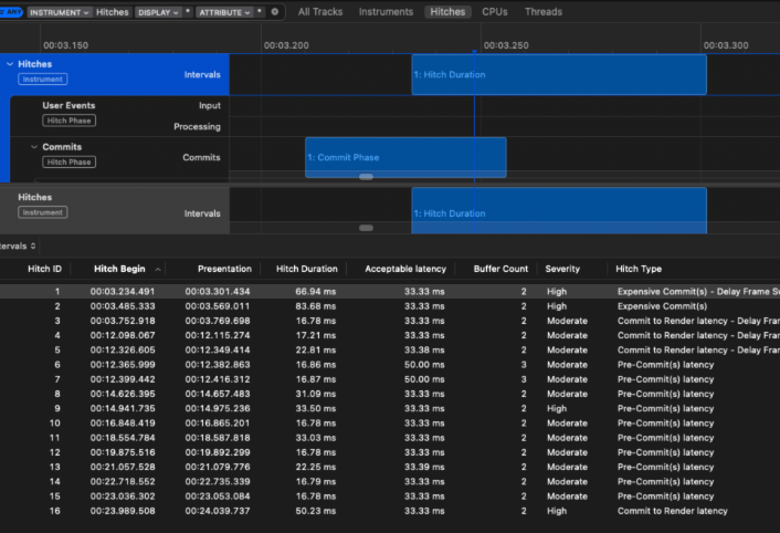 Xcode 12λΆν°λ instrumentsμμ Animation HitchesλΌλ ν νλ¦Ώμ μ 곡ν©λλ€.