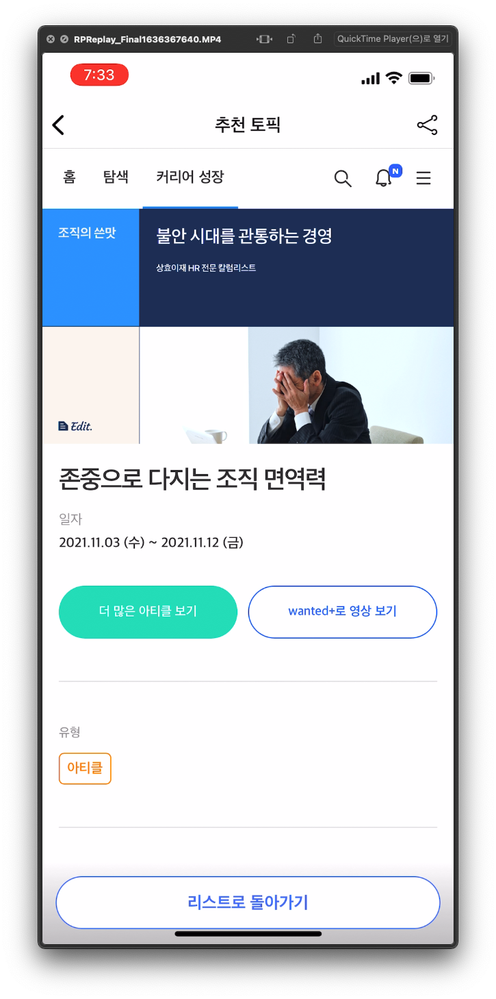ํนํ ์คํฌ๋กค ๋ ๋ ๋ทฐ ์ปจํธ๋กค๋ฌ ์์ ๋ ์ด๋ธ(Text, Label)์ด ๊ทธ๋๋ก ๋ค๋น๊ฒ์ด์ ๋ฐ์ ํ์ดํ๋ก ์ฅํ๋ ๋ํ๋๋ ์ ๋๋ฉ์ด์ !