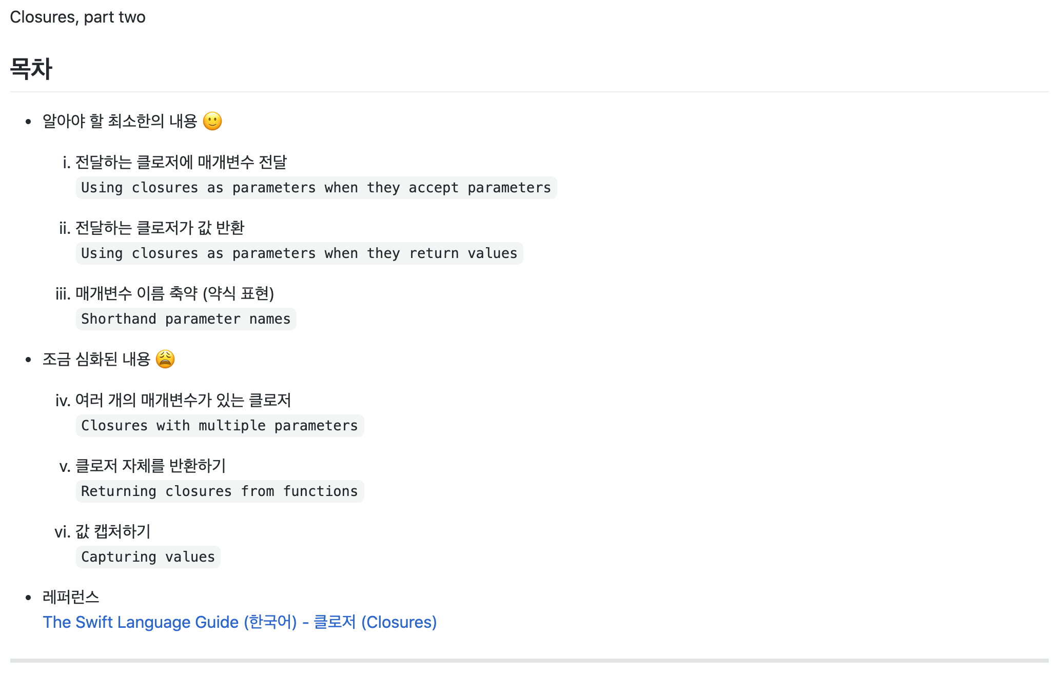 The Swift Language Guide (한국어) - 클로저 (Closures)